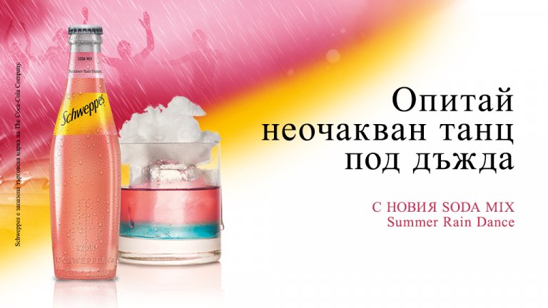 На финала доливаш Schweppes Soda Mix Summer Rain Dance и оставяш балончетата да създадат усещането за падащи капки дъжд.