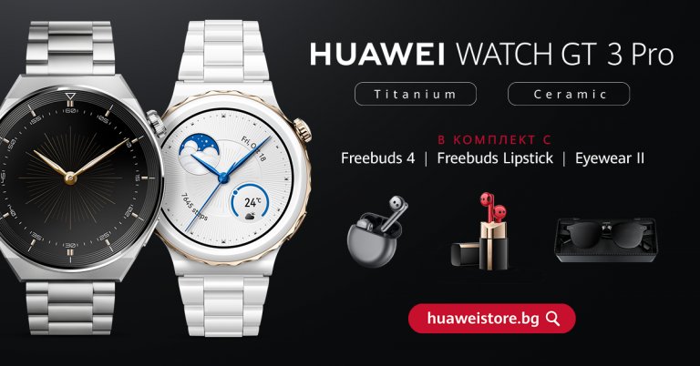 Един сигурен начин да блеснеш на бала е да носиш на китката си новото бижу в портфолиото смарт часовници - Huawei Watch GT 3 Pro, в Titanium Edition за кавалерите и Ceramic Edition за дамите. Кампанията за предварителни поръчки в комплект съответно с Huawei FreeBuds 4 и FreeBuds Lipstick е активна и на huaweistore.bg. Освен тях онлайн магазинът предлага още една ексклузивна оферта - със смарт очилата с UV защита Huawei x Gentle Monster Eyewear II, с които можете да слушате музика и отговаряте на телефонни обаждания.