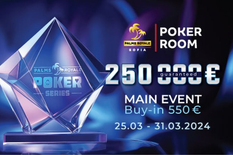 Palms Royale Poker Series е запазена марка на покер залата в казино Palms Royale Sofia, което е известно със своя изискан декор, първокласно обслужване и модерно оборудване. Казиното разполага с най-съвременни маси за покер, осигуряващи безпроблемно и приятно изживяване за всички участващи.