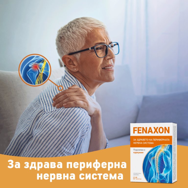 Добре е да заложите на комплексен продукт, разработен специално за нуждите на периферната нервна система. Fenaxon съдържа оптимална комбинация от 11 активни съставки, които действат върху източника на проблема, при остри и хронични състояния на периферната нервна система. Във Fenaxon можете да откриете куркумин, уридин монофосфат, необходимите ви витамини от група В, витамин D, както и магнезий, който спомага за намаляване на оплаквания като мравучкане и изтръпване. Куркуминът има свойството да облекчава болката при хронични и остри състояния на периферната нервна система. Fenaxon има активен терапевтичен, възстановителен и профилактичен ефект и е в състояние да облекчи болката и да спомогне регенерацията на увредените нервни клетки.