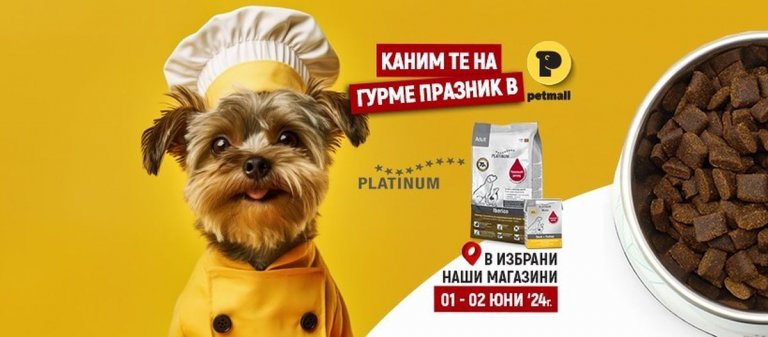 Всеки, който иска да се увери в качеството на храната, може да заповяда на дегустационен уикенд на 1 и 2 юни 2024 г. със своя домашен любимец в избрани физически магазини на Petmall: Овча Купел, Заимов, Bulgaria Mall, Тотлебен. Всички, които присъстват на събитието, за да се уверят в невероятните качества на храната Platinum и да разберат повече за FSG метода, по който тя се приготвя, ще получат като ПОДАРЪК тестови количества от нея.