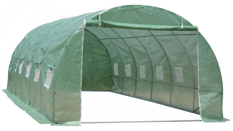 Сред обичайните материали за такива конструкции попадат стъклото и поликарбонатът, а също и полиетиленът - именно полиетиленово е покритието на оранжерия Garden Star HD-7762, която също можем да открием в Практикер. Не бива да забравяме да отделим достатъчно пространство и за лехи с овощни дръвчета - не вярвам някой от нас да не обича натежалите им от цвят клони или плодовете, на които се наслаждаваме с настъпването на края на лятото.