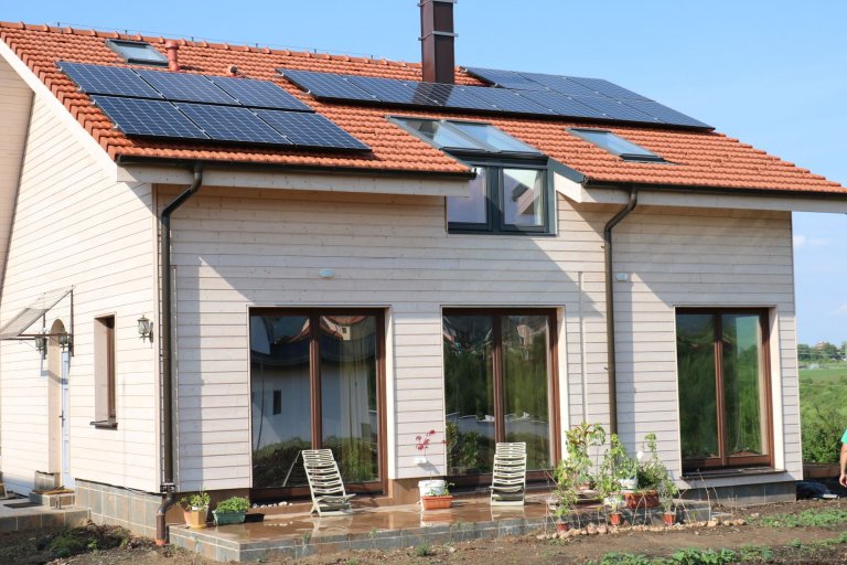 Високата и доказана в практиката енергийна ефективност на прозорците VELUX е един от факторите, натежали при избора на собствениците да се разположат покривни прозорци на втория етаж. "Още преди да започнем да строим къщата, си представях точно такъв дом с такива прозорци. Прозорците VELUX с техните показатели и много добрата им изолация се вписват идеално в цялостната ни концепция за енергийно ефективна къща", уточнява собственичката.