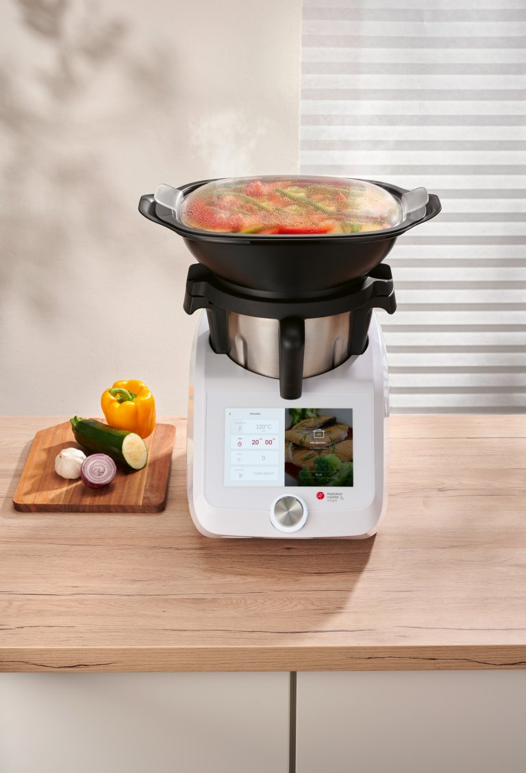 Така, например, докато Monsieur Cuisine Smart готви супа, над нея могат да се приготвят сочни зеленчуци на пара, а над тях - крехка риба на пара.