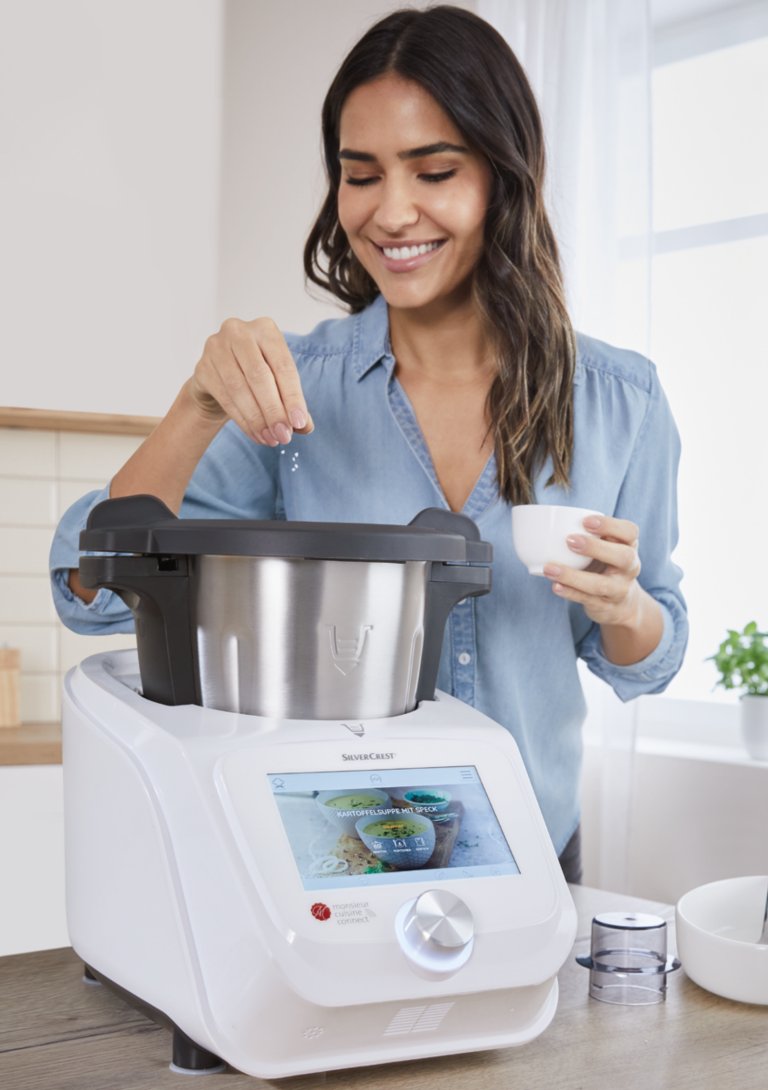 Monsieur Cuisine Smart, който освен на мултикукър, изпълнява ролята и на кухненски робот, ни посреща с голям удобен дисплей и възможност да създадем свой собствен профил. С това върви и специално мобилно приложение, което прави работата с уреда е още по-интуитивна.