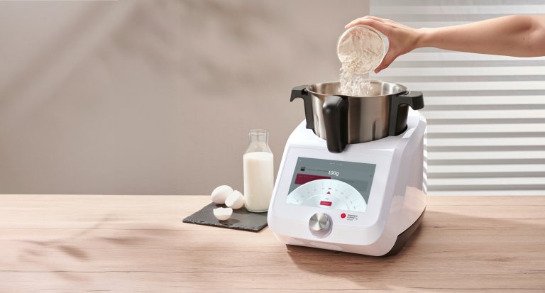 След избора на рецепта можем да зададем броя порции, които желаем, и пред очите ни се появява прецизен списък с продукти и количества. Няма нужда да мерим на око или тепърва да търсим кухненското кантарче - мултикукърът има вградена везна.
