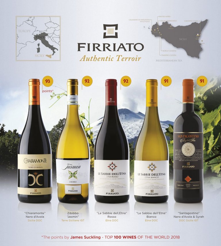 Лозята в планината Етна, от които се вижда димящият вулкан със същото име, са отново пример за силата на човешката воля, дух и съзидателност. В един труден, планински и опасен район Фириато създадоха вина, които впечатлиха със своята изисканост, финес и уникален характер световните винени критици. Не само това - те дадоха нов живот и силно търговско име на цял един район, който докосва сърцата, радва очите и се помни цял живот.