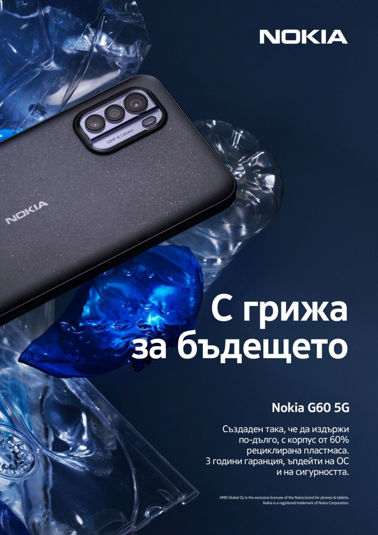 По-бюджетен вариант е Nokia G60 5G, почти наполовина от цената на Nokia X30 5G, при който рециклираната пластмаса, заложена при изработката, е 60%.