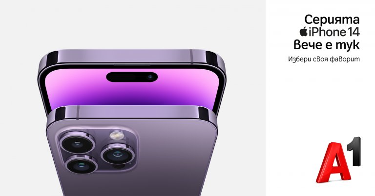 A1 започна продажбите на новите iPhone 14, iPhone 14 Pro и iPhone 14 Pro Max. Моделите са налични онлайн на A1.bg и в търговската мрежа на телекома, където потребителите ще намерят широк избор от цветове и модели с различна памет - от 128 GB до 1 ТВ. Всеки закупил един от новите iPhone 14 ще го получи в комплект с оригинално зарядно, осигурено от А1.