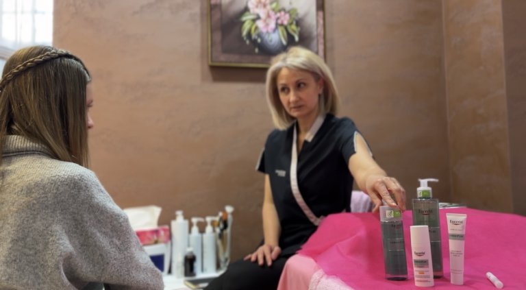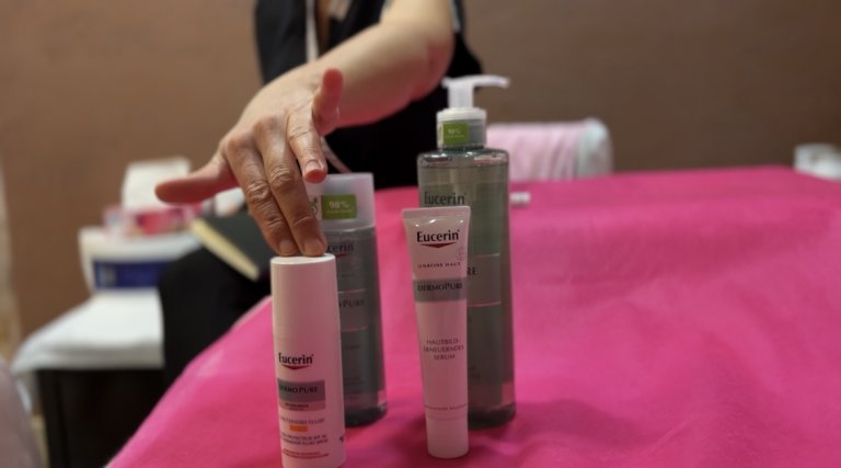 За въвеждането на адекватна грижа при акнеичната кожа, независимо дали акнето се заформя в тийнейджърките години или в по-късна възраст, Женя препоръчва създаване на стабилна рутина с правилна дермокозметика. Тя насочва клиентката си към серията на Eucerin DermoPure със съвет да бъде постоянна и последователна в използването ѝ.