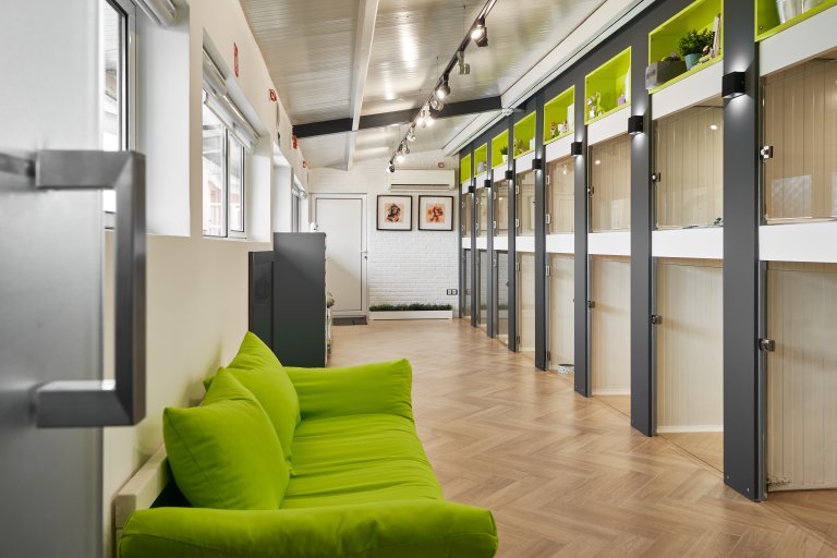 Зоните и помещенията са проектирани така, че да отговарят както на нормативната база, така и на високите стандарти за качество на собствениците. Отделните зали за различните видове домашни любимци разполагат с целогодишна климатизация и вентилация и с естествена светлина.
