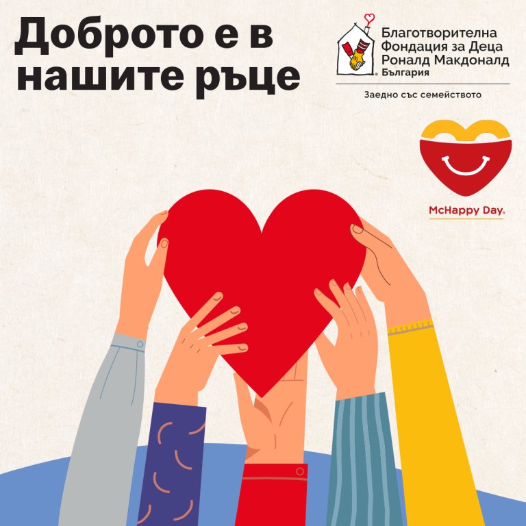 Вече 24 години Макдоналдс организира дарителската кампания McHappy Day™, с която набира средства за деца в неравностойно положение и за деца с онкохематологични заболявания. Кампанията се излъчва в рамките на месец ноември, като всеки може да участва, дори и с лично дарение.