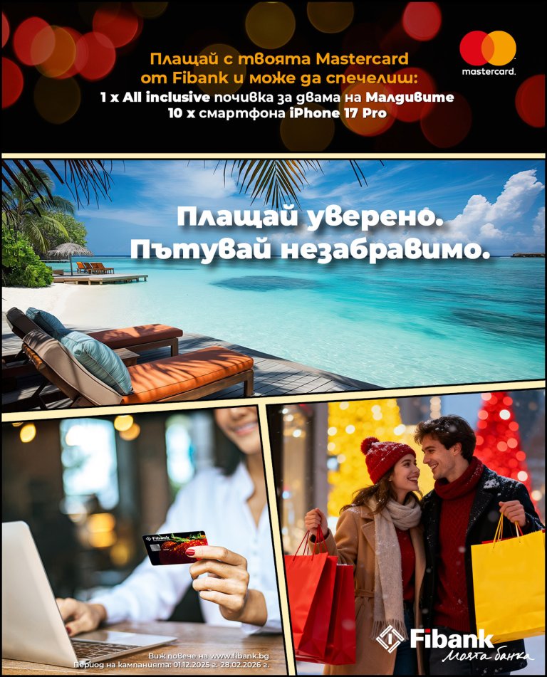 Fibank (Първа инвестиционна банка) стартира кампания за плащания с дебитни и кредитни карти Mastercard, издадени от банката, която ще продължи до 28 февруари 2026 г. и предлага изключително интересни награди.