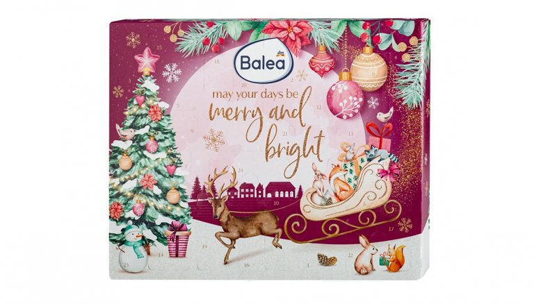 Като Balea коледен календар, който съдържа 24 изненади - подбрани козметични продукти и аксесоари, за да има всеки ден до Коледа неустоимо ухание - свеж цитрус, нежен цвят, ванилия и карамел.