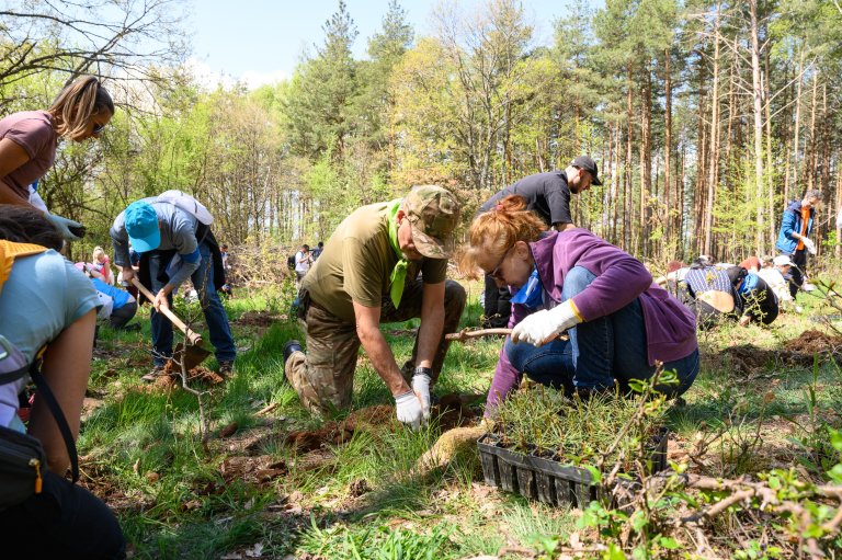 1000 фиданки от видовете черен бор и зимен дъб засадиха служителите на KBC Group в България в събота, 26 април 2025 г.