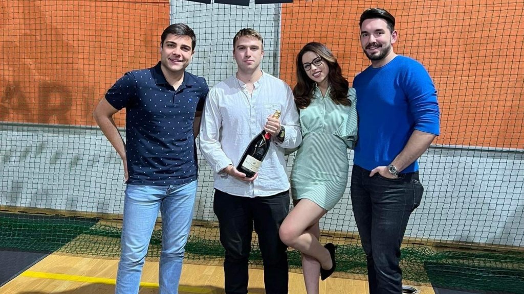 Няколко дни след срещата ни в Благоевград получих съобщение от Поли, придружено от снимка на ухилени до уши студенти. Държат бутилка шампанско.