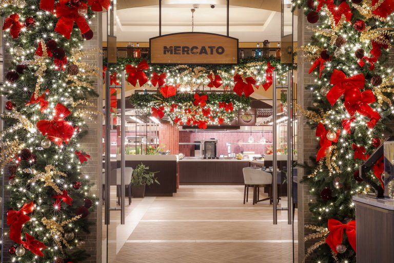 На тръгване взимам от коледния базар, разположен в лоби, и специално приготвен коледен сладкиш за вкъщи, има и сладки, и щолен и греяно вино. Едва устоях да не заграбя всичко сладко.