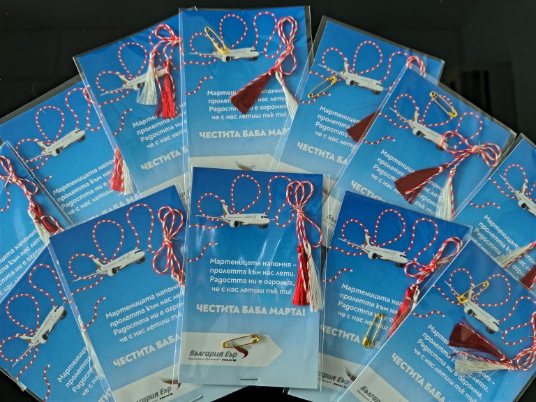 Вчера, 1 март, националният авиопревозвач отново поднесе приятна изненада на своите пътници по случай традиционния български празник Баба Марта. Всички пасажери, пътували с редовните линии на "България Еър" в този ден, получиха от кабинния екипаж специален подарък - красива българска мартеница с пожелание за здраве, късмет и благополучие.