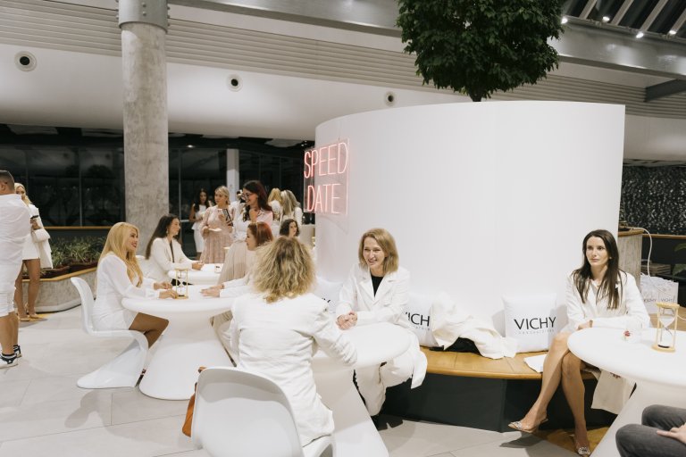Vichy демонстрира своя дерматологичен опит организирайки т.нар. "бързи срещи". В смела обстановка, символично доминирана от белия цвят, присъстващите имаха възможност да прекарат време с избран дерматолог в специално проектирано пространство. Те споделиха със своите последователи в социалните мрежи отговорите на експертите за приложението на този продукт и разсеяха митовете около използването на ретинол.