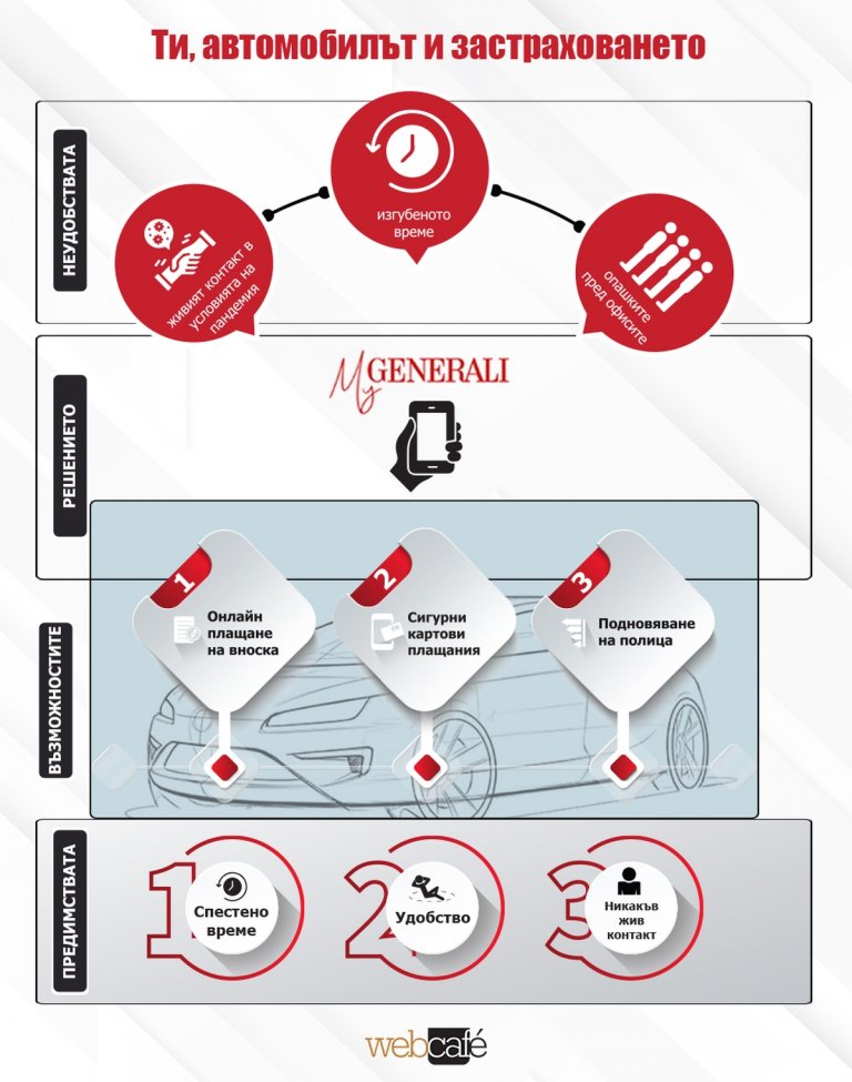 Явно и в Дженерали Застраховане мислят по същия начин, тъй като вече предоставят не само сигурност и защита на достъпни цени за автомобилите на своите клиенти, но и идеален нов начин за спестяване на време при извършването на неотложни задачи по автомобила.