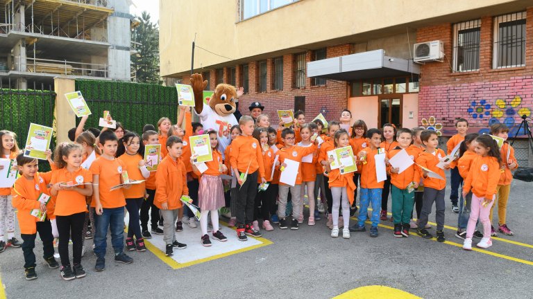 Тази година кампанията стартира с открит урок в 119 СУ "Акад. Михаил Арнаудов" в София, където част от героите от клиповете - главен инспектор Мария Ботева от "Пътна полиция" и мечето TEDI, показаха на децата как да пресичат и как да карат колело безопасно.