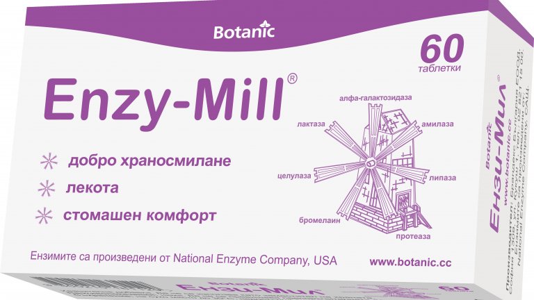 EnzyMill е натурален продукт, който спомага храносмилането и влияе благоприятно на проблеми, свързани с него.