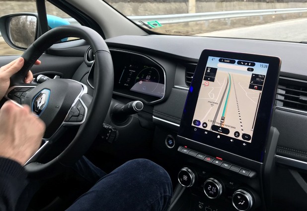 При включването в движението и малко по-смело натискане на педала, машината с лекота ускори до 80 км/ч, оставяйки всички на значително разстояние. В този момент забелязах и една друга подробност - колата знаеше с каква скорост мога да се движа на всеки път. GPS-ът пък услужливо напомняше къде има стационарни камери. Други интересни подробности са, че когато изпреварването беше забранено, на таблото автоматично се появяваше и знакът за забрана, а след това и за разрешаване. По-късно прочетох, че Zoe има система за разпознаване на знаци. В случай, че не го видиш, автоматично ще бъде отбелязан на таблото.