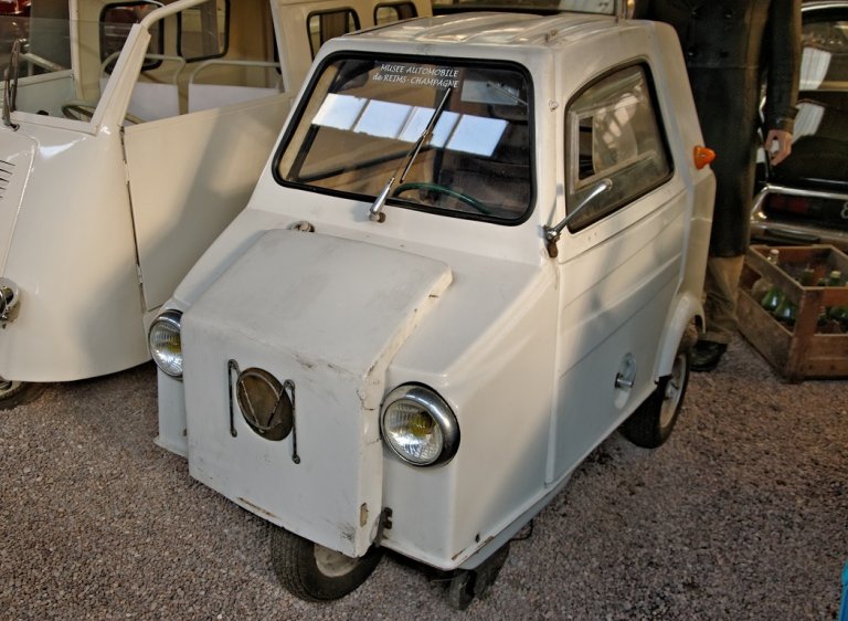 Нищо обаче не може да надмине по миниатюрност този дребосък, който е произведен през 70-те години на миналия век. Дело е на френското инженерно ателие ACOMA и представлява кръстоска между компактен автомобил и мотоциклет.