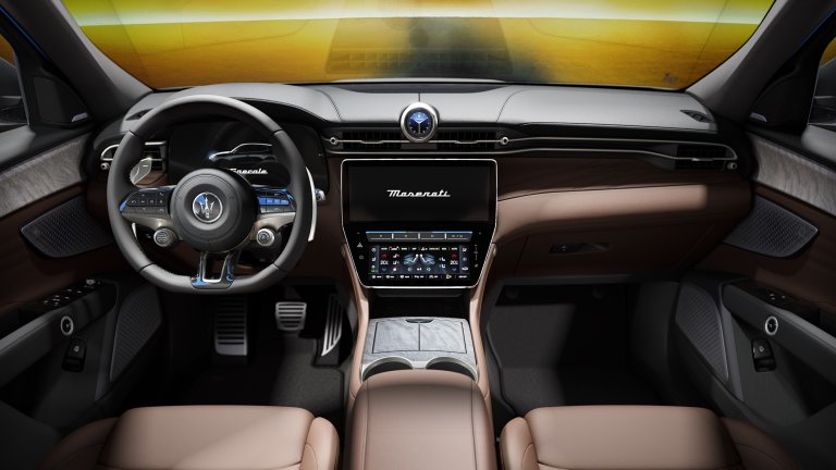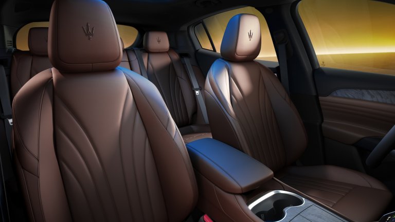 Вътре в SUV-то се срещаме с обичайната майсторска изработка и естетическото изящество на марката с тризъбеца. Кабината е тапицирана в първокласна кожа Chocolate или алтернативно в първокласна кожа Ghiaccio, и украсена с елементи от дърво burl с отворени пори и спортни стоманени педали.