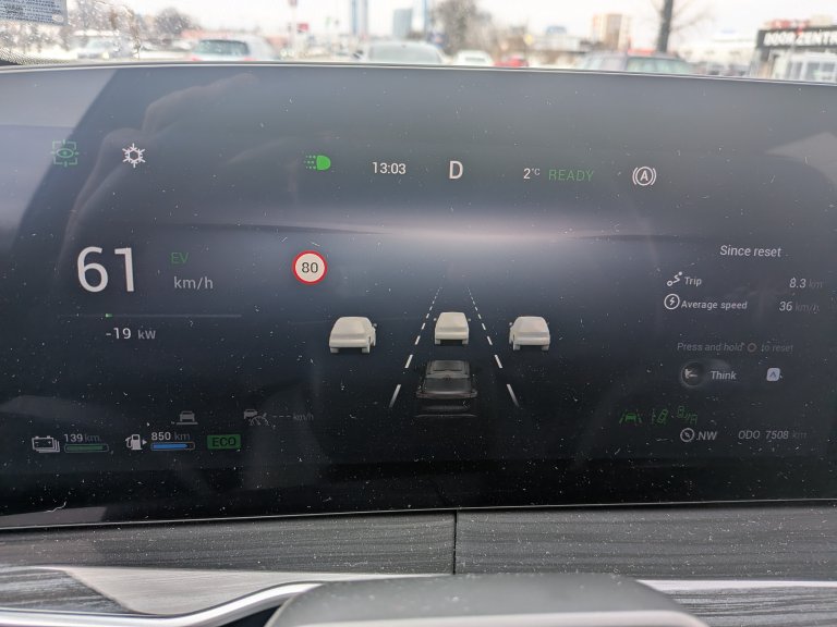 Допадна ми също датчикът, който следи дали не съм си отклонил вниманието от пътя. Намира се при волана и честичко ме подсещаше, че не е редно да човъркам из менютата на инфотейнмънт системата, докато шофирам.