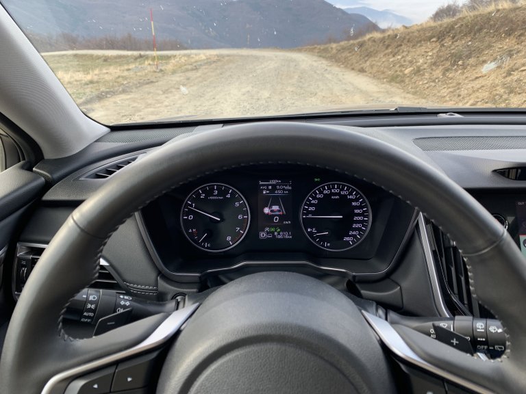Изборът на черен път - SNOW/DIRT, просто превръща Outback в рали автомобил, който се катери без усилия и със същата лекота се спуска. Разбира се, малцина се осмелиха да направят същия преход, а за някои от виртуозните изкачвания присъстваха старите руски КРАЗ возила. Всичко това определено затвърждава цялостната философия на истинския приключенски дух на Subaru в лицето на Outback. Така наречената Symmetrical All-Wheel Drive няма да ви разочарова, а и благодарение на нея изкачването беше като разходка до магазина. Японската педантичност позволи да се насладим на панорама много над облаците. Смущаващото в такива моменти е само свистенето на перките от вятърните централи.