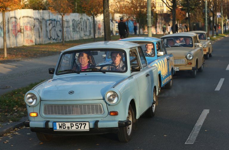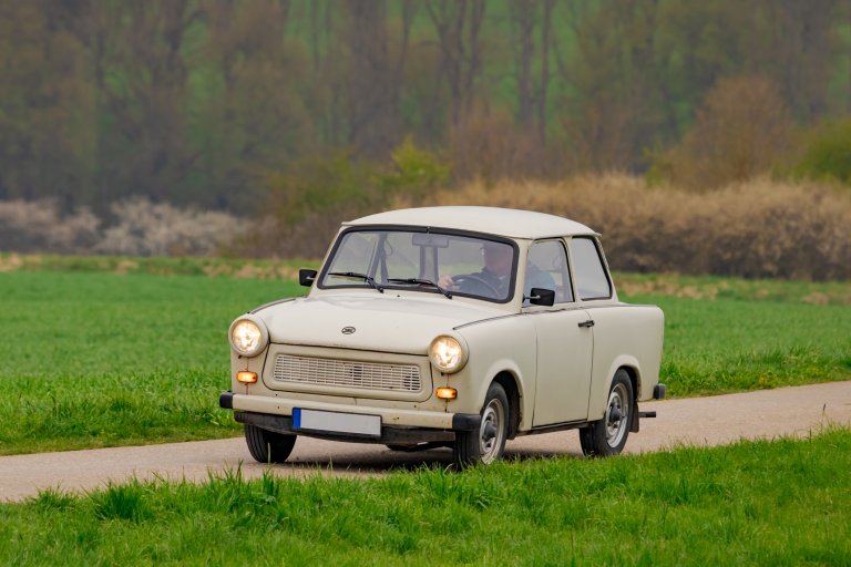 "Тази кола е с размерите на маса за хранене, има багажник, колкото на спортна кола, печели златен медал по замърсяване на околната среда и е удобна, колкото средна седалка в самолет", шегуват се жителите на ГДР. Именно там се прави Trabant - в Цвикау, Саксония.