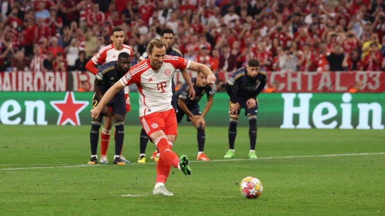 Английският нападател отново се разписа, вкарвайки от дузпа при равенството 2:2 на Байерн Мюнхен с Реал Мадрид в първия полуфинал от Шампионската лига във вторник вечер.