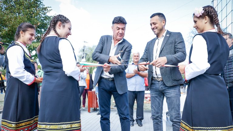 Всичко е изготвено по изпитаната рецепта - момичета в носии, менчета с вода за подливане, рязане на лентички, освещавания, поръсени главици и прекръстващи се местни функционери. И задължителните снимки за спомен с деца, доведени от предоволните си треньори и родители - и те да потвърдят колко хубаво прави чичко президент.
