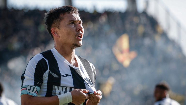 В 10-та минута резултата бе открит, след като Умарбаев изненада Наумов от статично положение. Всички очакваха центриране, но топката бе насочена под гредата на "канарчетата", а стража не успя да се намеси на ниво.