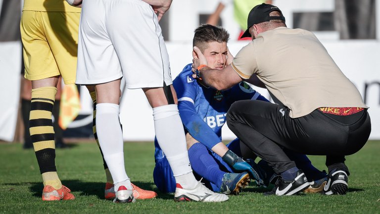 След повече от десет минути без футбол, Наумов седна на терена и дълго време с него се консултираха водещите лица, които трябваше да решат дали срещата да се доиграе.