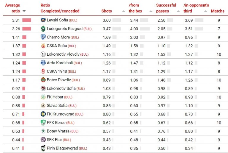 Проучването на футболната обсерватория CIES и се базира на четири показателя: отправени удари, удари от наказателното поле, успешни подавания и завършени пасове във финалната третина от терена.