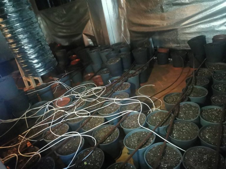 Разследващите са намерили 413 саксии за отглеждане на канабис в къща в курортно селище "Елените". В автомобил са открити и 23 кг суха листна маса, която е била готова за продажба. Също така са иззети и множество оръжия, определени от директора на Областната дирекция на МВР Калоян Калоянов като "впечатляващ арсенал".