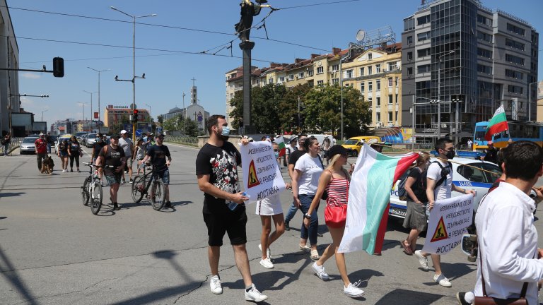 Група протестиращи излезе и на едната лента на булевард "Александър Малинов" в квартал "Младост". С тях беше и Светослав Трайков, който миналата седмица участва в спирането на метрото и получи обвинение за съучастие в хулиганство. Част от протестиращите на различни места в столицата носят плакати "Извиняваме се за неудобството. Държавата е в ремонт", а множество други се движат с български флагове.
