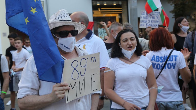 Час по-късно пред Съдебната палата се бяха събрали част от протестиращите, а в 19 ч. вече имаше хиляди недоволни и в района на президентството. Те скандират "оставка", а патриотични песни озвучават центъра на София. От колоните прозвучаха и изказвания на премиера, които бяха посрещнати с освиркания.