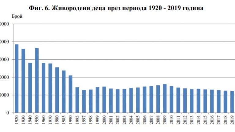 През 2019 г. в страната са регистрирани 61 538 живородени деца и в сравнение с предходната година броят им е намалял с 659.