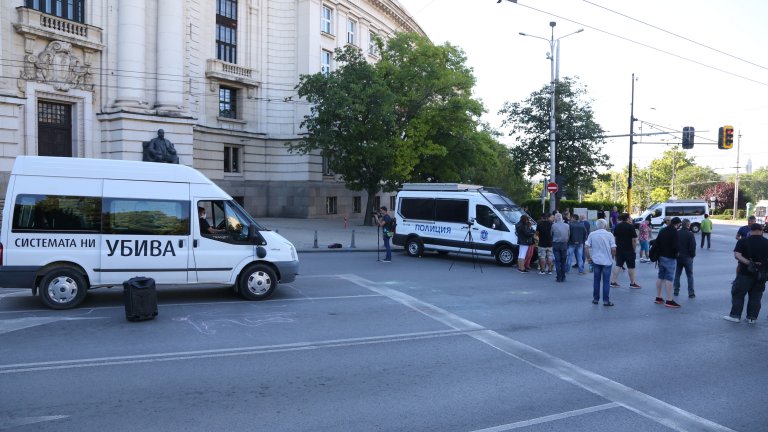 Сега бусът на "Системата ни убива" е паркиран при кръстовището на СУ.