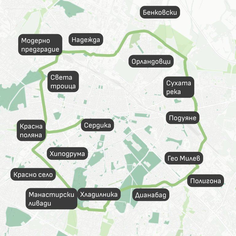 В крайната си версия линейният парк ще минава и през шест реки на София. Ето и схемата на Зеления ринг по квартали: