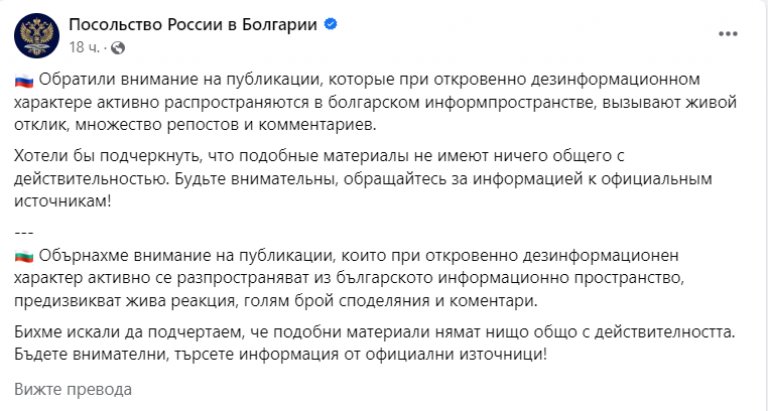 Нека само си припомним за агресивната реторика на руския посланик у нас Елеонора Митрофанова или дори начина, по който във Facebook руското посолство канализира посланията си към точно определени хора и блокира всички останали коментари в страницата си.