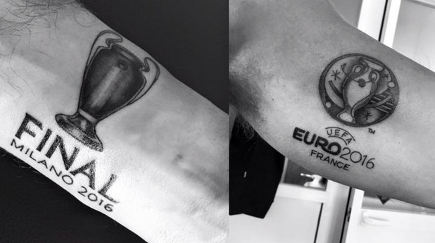 След като ръководи финалите на Евро 2016 и Шампионската лига, 41-годишният рефер си татуира трофеите от двата турнира.