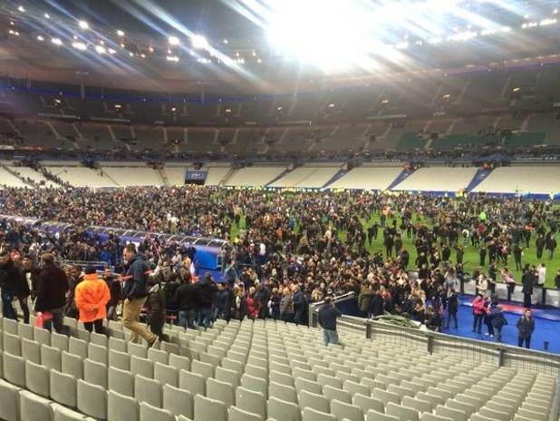 Двамата специалисти се срещат с длъжностни лица на стадиона, които ги информират за кризата, но без много подробности. Междувременно, президентът на Франция Франсоа Оланд е изведен от "Стад дьо Франс" с хеликоптер.