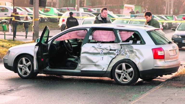Излиза от колата и започва да бяга, но е настигнат от нападателите, които му нанасят десетки рани с ножове и мачете.