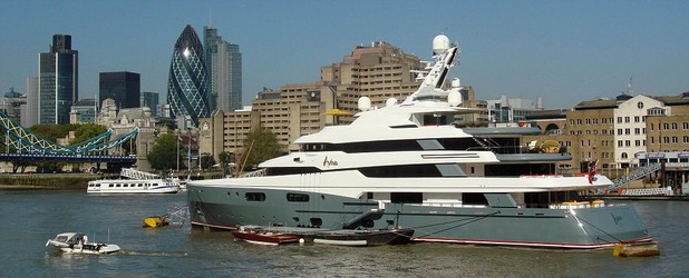 Яхтата на Люис "Aviva" във водите на Темза край Тауър Бридж