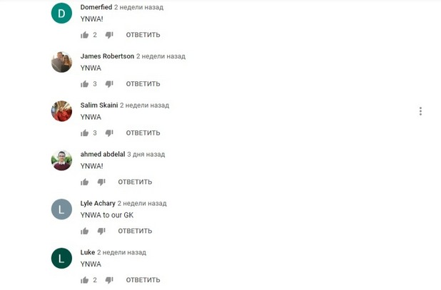 "Изпълнителката, която записа това видео, ме попита: "Какво, по дяволите, е това "YNWA"? Отговорих й, че идва от химна на Ливърпул и че това е една дълга и забавна история."