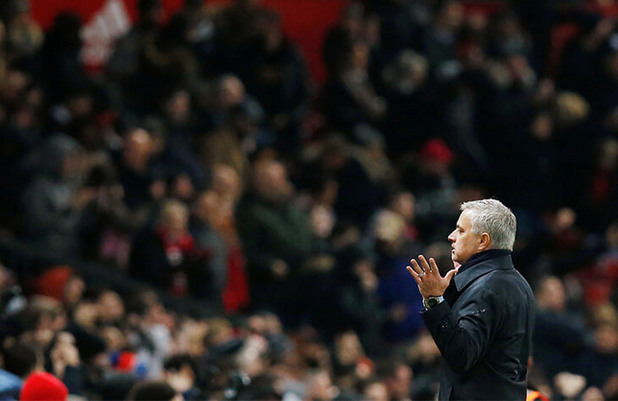 Забавно беше и в последната минута на полувремето, в която, застанал с гръб към терена, Жозе се усмихваше и си говореше с феновете на Юнайтед на предните редове.